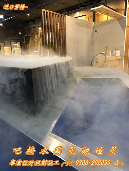 吧檯造霧、吧檯噴霧、雲霧效果、自動噴霧系統、噴霧降溫、工廠降溫、溫室降溫、農業降溫、工業降溫、戶外降溫、噴霧造景、戶外造景、景觀造景、水池造景、廣告造景、降溫、加濕、驅蚊、造景、消毒、鎮塵、專業諮詢設計規劃施工、0800~202050